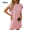 2025 Spring Summer Collection Elegant European American V-Neck Lace Waist Dress Women’s Casual Chiffon Woman Dress