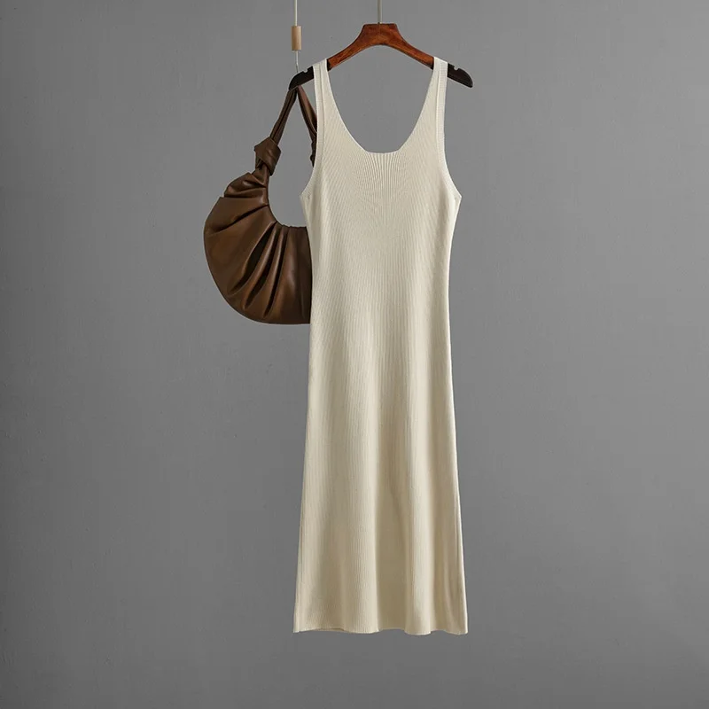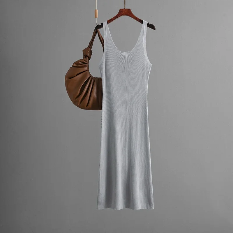 2025 Summer Woman Dress Sexy Knitted Sling Dress Solid Color Long Maxi Skirt Party Style Plus Size Hip Cover Woman Dress