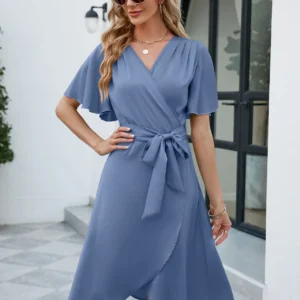 Be the first to review “Ohsisa 2025 Summer for Woman Dress Satin V Neck Waist Bell Sleeves Plaid Dress European American Casual Style New Woman Dress” 取消回复