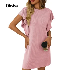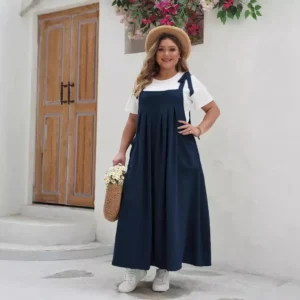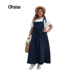 Ohsisa Summer Holiday Women’s Full Printed Pleated Stretchy Sleeveless Curve Midi Casual Dresses