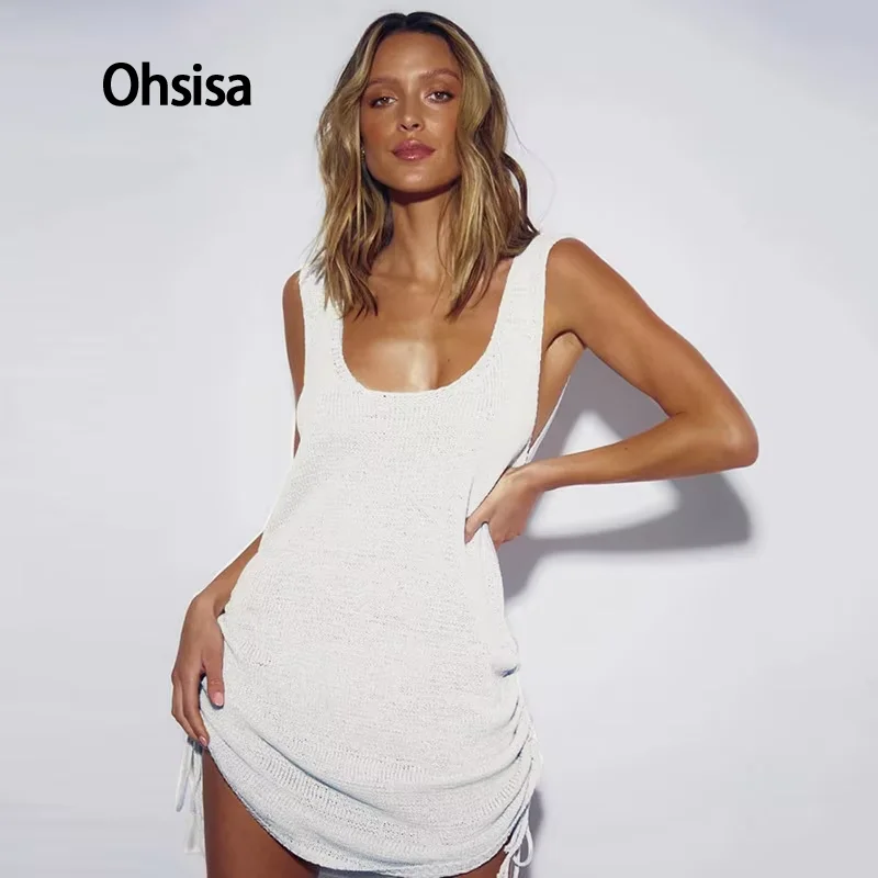 Ohsisa Style Women’s Sweater Dress New Backless Vest Knitted Beach Bikini Cover-Up Sexy Sun Protection Woman Dress